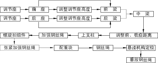 1、徐州吊籃前調節支架調節高度爲1.27m ~ 1.83m,使前梁下側面(miàn)略高于女兒牆(或其它障礙物)高度。 2、前梁伸出端懸伸長(cháng)度 ZLP630 型爲 1.2-1.7 米。前、後(hòu)座間距離在場地允許情況下,盡量調整最大距離,使後(hòu)支架支撐點到前支架支撐點的長(cháng)度與前支架支撐點到前梁前端長(cháng)度的比大于2。 3、張緊加強鋼絲繩時(shí),使徐州吊籃前梁略微上翹 3-5 厘米,産生預應力,提高前梁強度。 4、徐州吊籃安裝鋼絲繩時(shí),每根鋼絲繩卡扣的數量是 4 個,U 形卡扣在鋼絲繩尾端對(duì)側,且方向(xiàng)對(duì)齊。卡扣應從吊裝點處開(kāi)始依次夾緊,并在最後(hòu)一個繩夾和前一個繩夾間,使鋼絲繩有少許拱起(qǐ)。或采用鋼絲繩锲型進(jìn)行安裝。