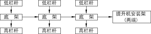 3、安裝兩(liǎng)端提升機安裝架使安全鎖支闆朝向(xiàng)平台側。
